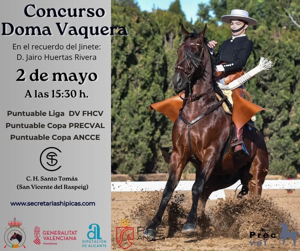 2 de mayo de 2026 Concurso de Vaquera Autonómico y Clasificatorio Copa ANCCE y Copa PRECVAL, se celebra en las instalaciones del C.H. Santo Tomás (San Vicente Raspeig-Alicante)