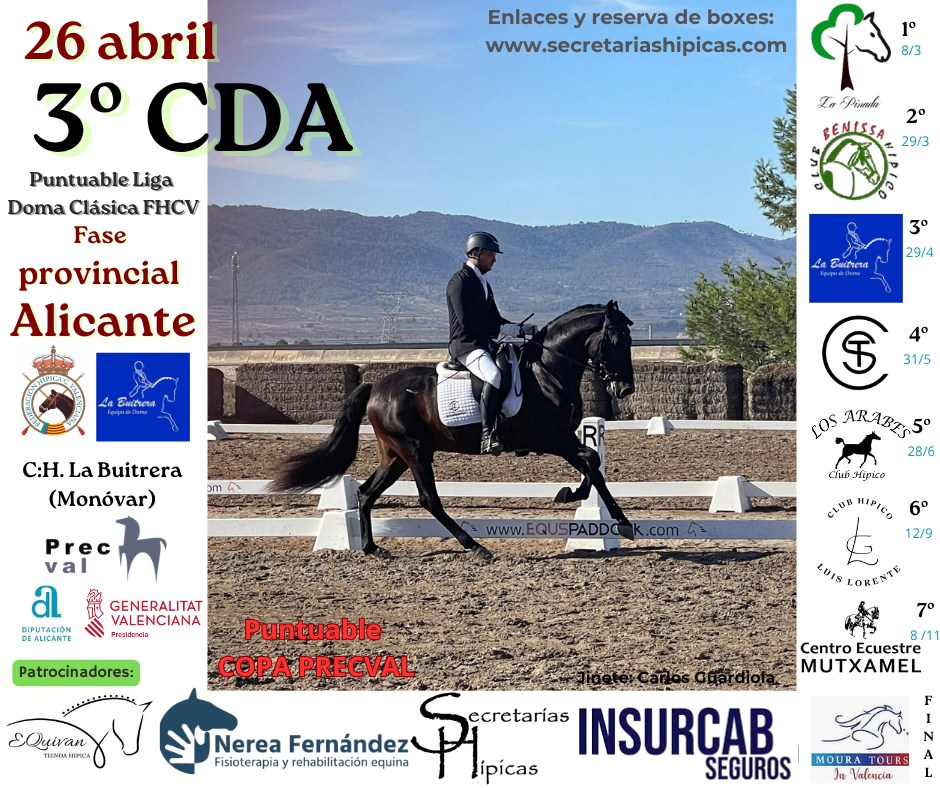 26 abril Concurso Autonómico Doma Clásica “Fase Alicante”, clasificatorio Liga Doma FHCV, que se celebra en las instalaciones del C.H. La Buitrera.